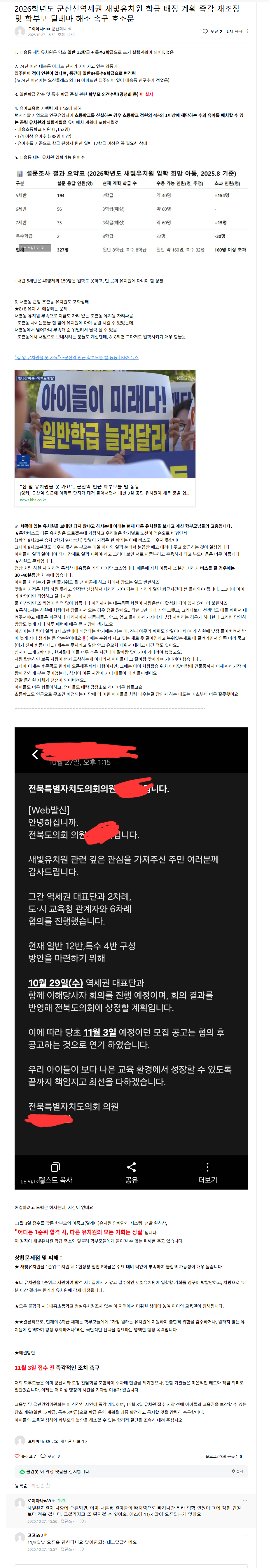 ○ ’26년 군산새빛유치원 학급 배정 계획을 일반 12학급, 특수 4학급으로 변경해달라는 의견에 대해 전북특별자치도
