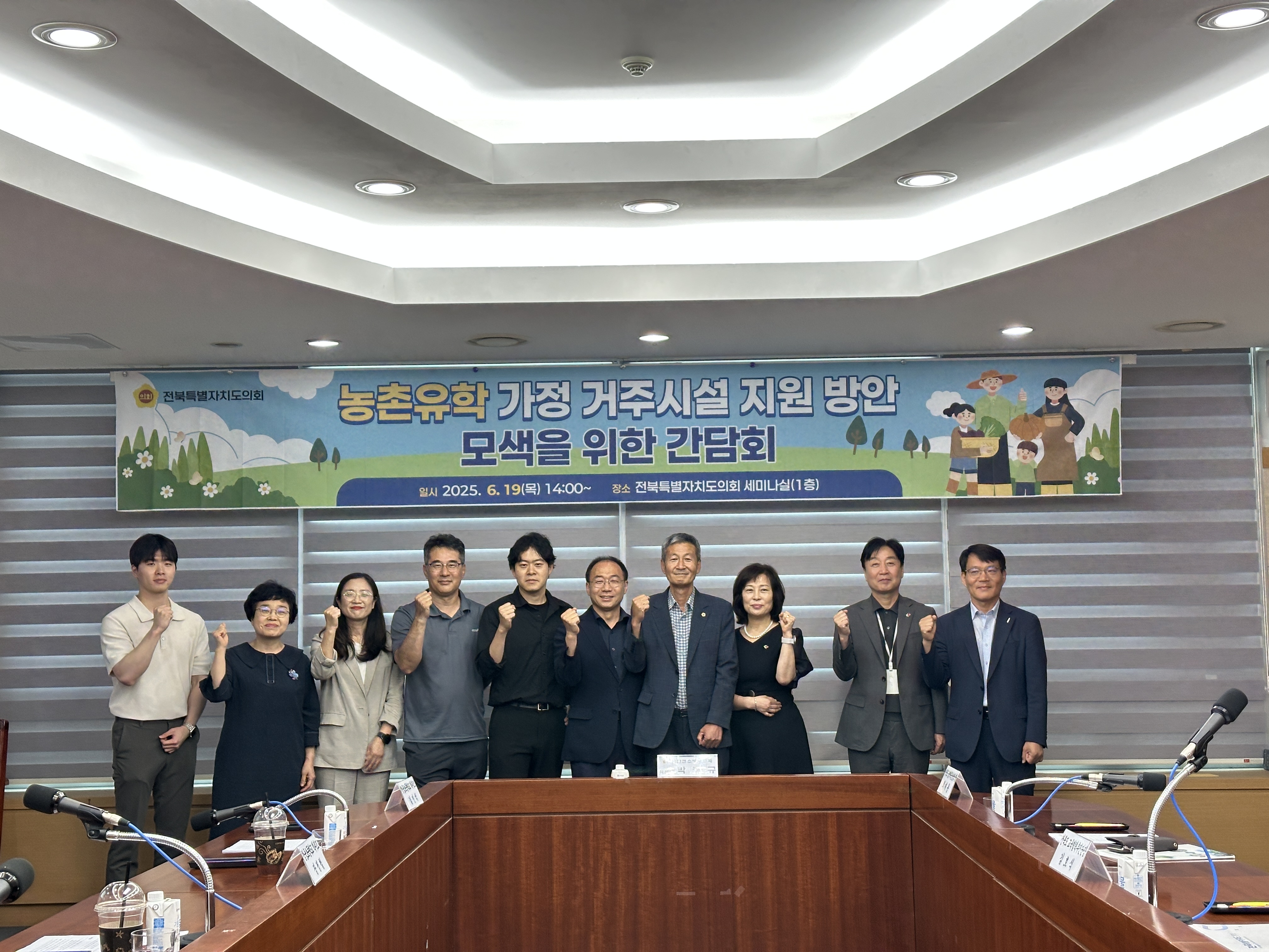 전북특별자치도의회 박정규 의원(임실)은 19일 도의회 세미나실에서 농촌유학 가정의 거주시설 지원 방안을 모색하는 간담회를 가졌다.