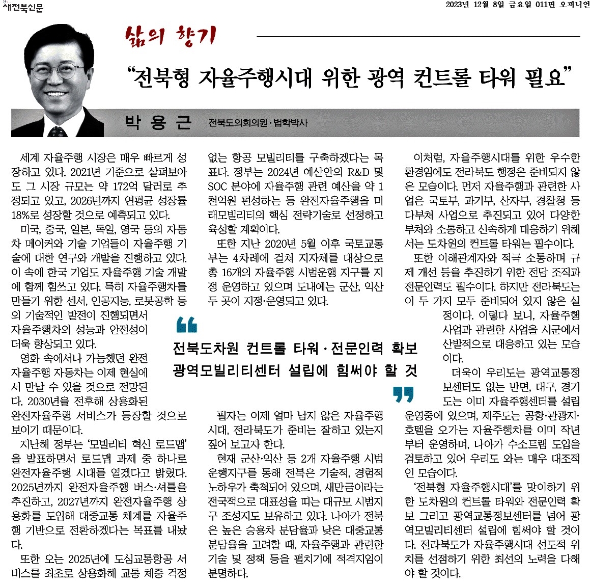 박용근 전북도의회의원 / 새전북신문 2023.12.08.(금)
