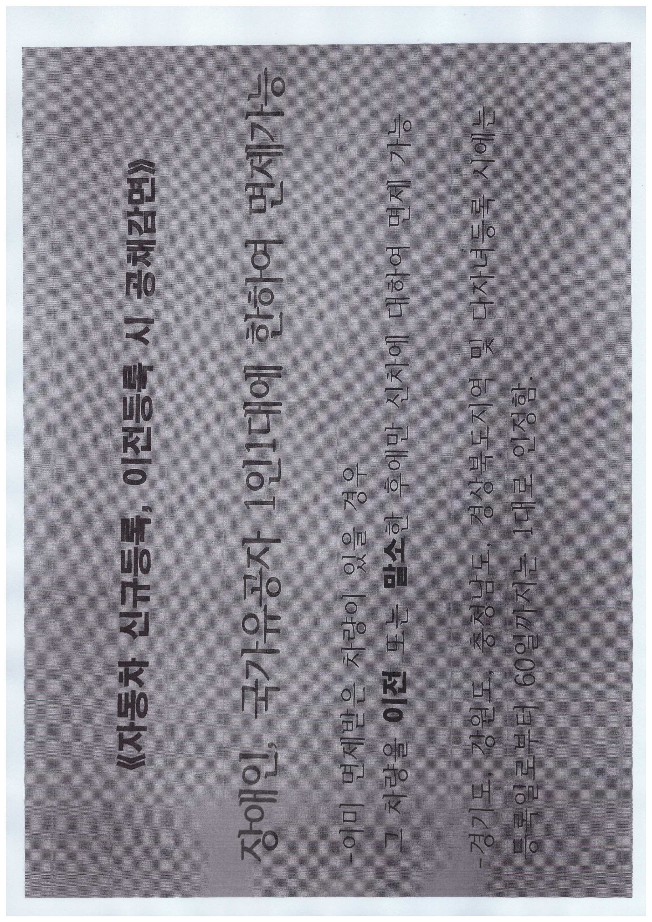 장애인,유공자 차량대체취득시 공체매입 문제점