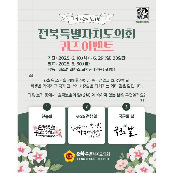 전북특별자치도의회인사위원회 공고 제2025-14호2025년 제5회 전북특별자치도의회 일반임기제공무원 임용시험 계획을 다음과 같이 공고하오니 참신하고 유능한 인재의 많은 응모를 바랍니다. 2025. 11. 12. 전북특별자치도의회인사위원회위원장