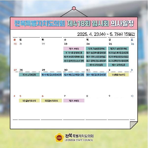 제423회 전북특별자치도의회 제2차 정례회 집회공고