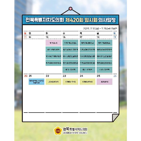 - 제420회 전북특별자치도의회 임시회 집회공고 2025.07.08