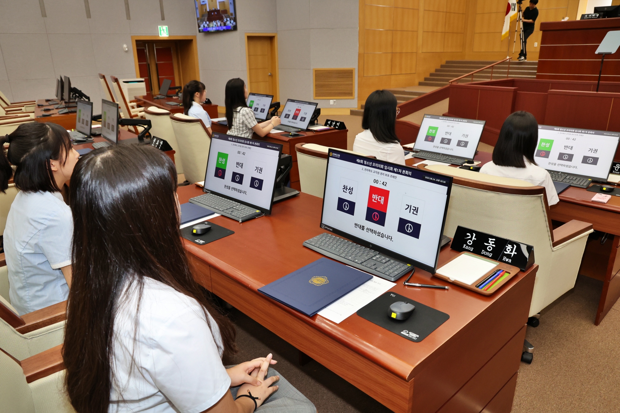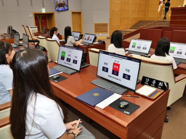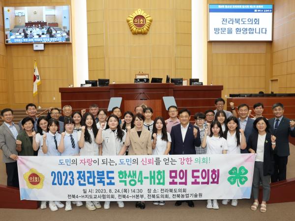 2023년 8월 24일에 개최한 학생 4-H회 모의의회 사진입니다.